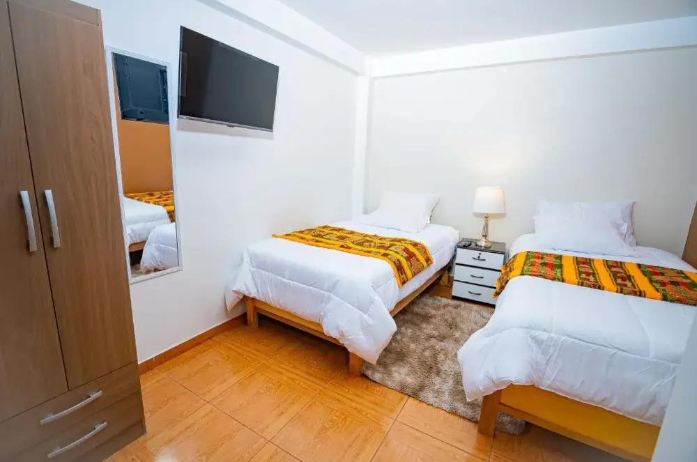 关于 Munay Wasi 的更多信息Hatun Wasi Puno 是一家位于秘鲁普诺市的住宿场所,地址为 208 Los Incas edificio, 21001 Puno, Perú。该住宿提供多种房型选择,包括非吸烟房间、家庭房以及配备平面电视的客房。所有房间均设有私人浴室,并提供免费 WiFi 服务。周边生活便利,距离小酒馆仅 300 米, Bookafé 距离 100 米,且靠近普诺火车站(150 米)。此外,附近还有多个景点如游行场(450 米)、巴伊亚 de los incas 木板路(1.