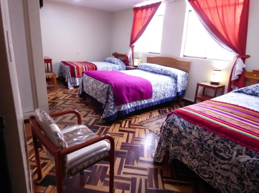 关于 Inka's Rest Hostel 的更多信息Hostal los Uros 是一家位于秘鲁普诺市 Teodoró Valcarcel 街 135 号的住宿场所。该住宿提供多种房型选择,包括适合家庭入住的家庭房以及配备必要设施的残疾人友好客房。客人可享受免费停车服务,并可在餐厅享用丰盛早餐。此外,还提供客房服务以满足不同需求。地理位置优越,靠近多个景点与便利设施,如加勒比海仅需步行 50 米即可到达,公园别针距离为 100 米,而著名的 Puno 火车站则在 100 米范围内。周边还有 Bookafé 和 Deusto 弧等热门地点,方便旅客探索当地文化与生活。同时,住宿支持协助预订计程车服务,确保出行便捷。